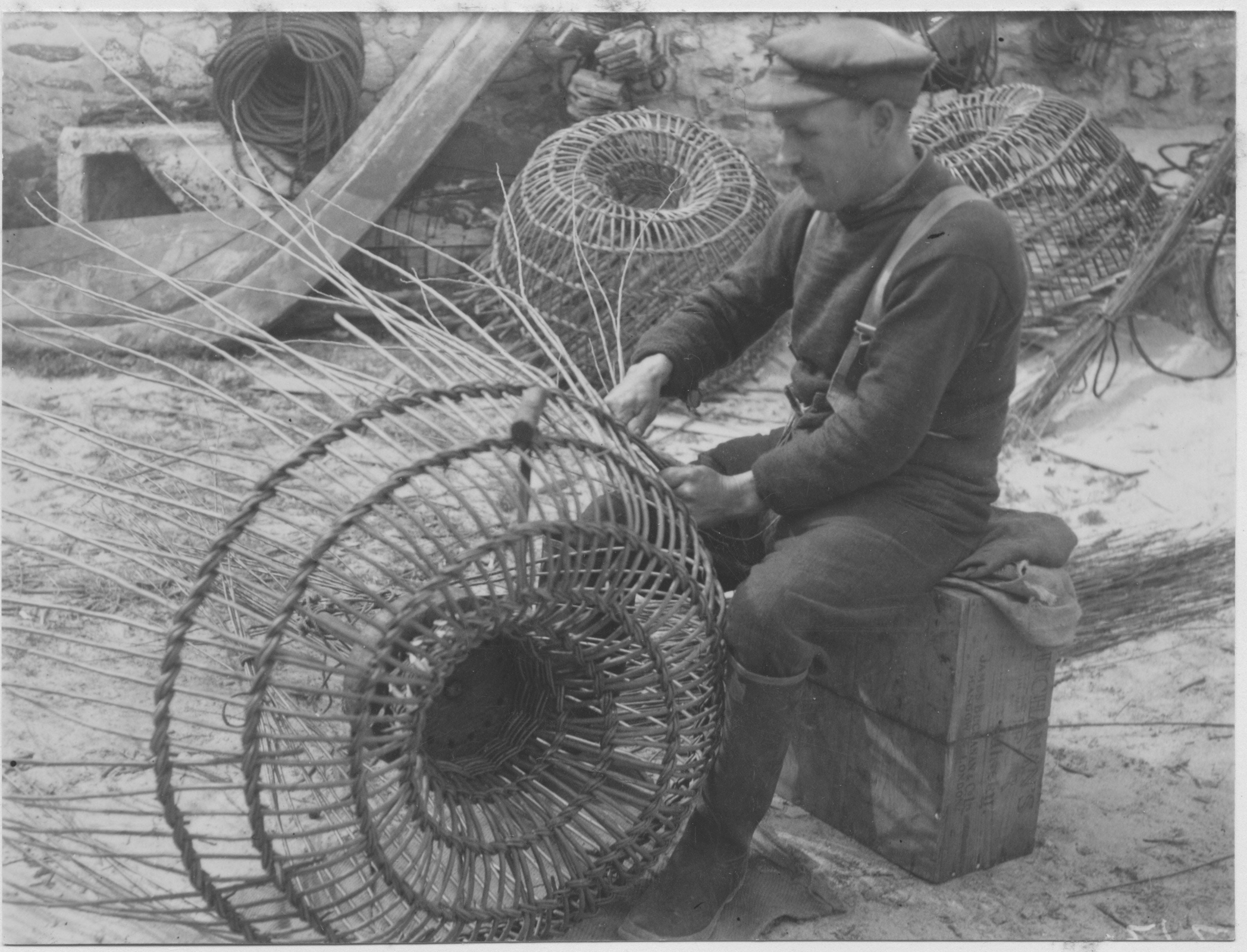 Above, photo of Edmund de la Mare making a Guernsey crab pot, credit: Priaulx Library, Guernsey