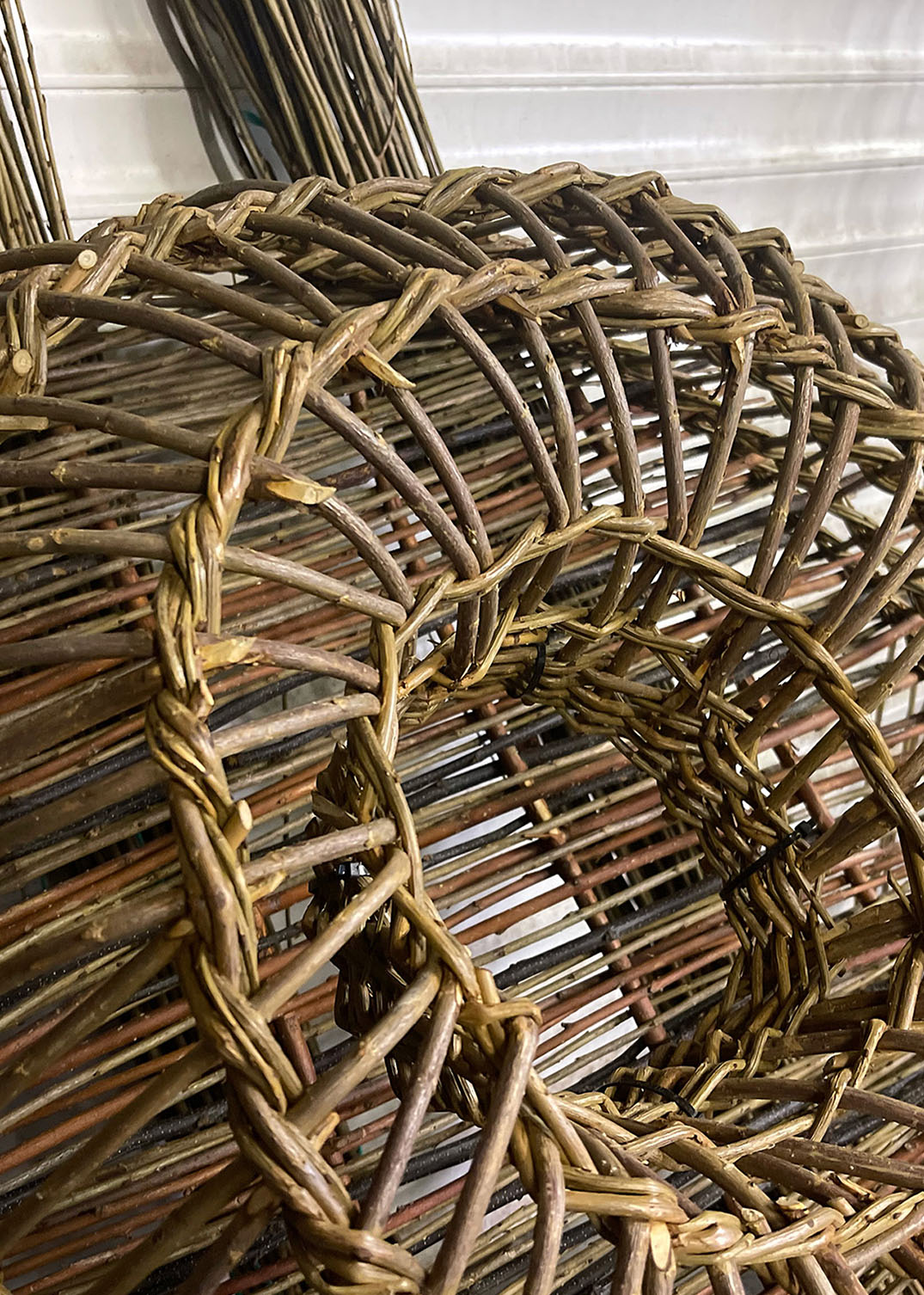 Guernsey pots are traditionally made with 7ft willow ribs and 5ft willow for the twist. Each pot requires at least four rows of twist down the sides, adding strength and resilience to the pot.