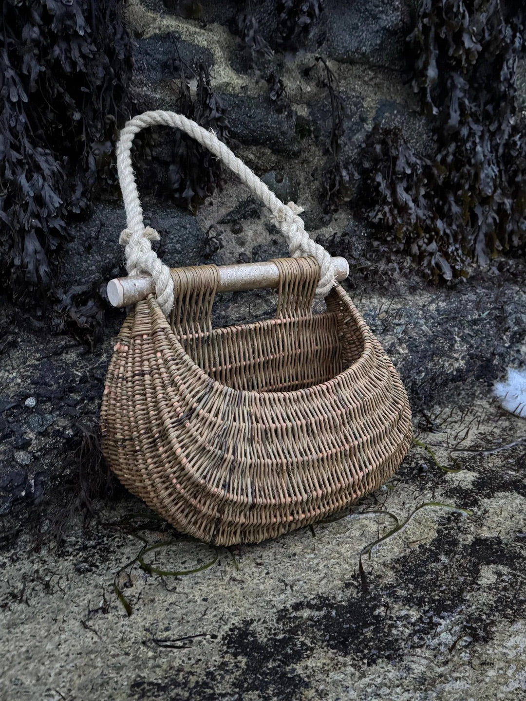 These heritage baskets are traditionally handcrafted with willow, a wire frame, a wooden handle (usually hazel) and a natural hemp rope strap, creating a very strong utilitarian basket.